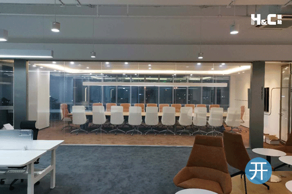 地點:廣州市天河區(qū)海安路 應用:調光玻璃辦公室隔斷